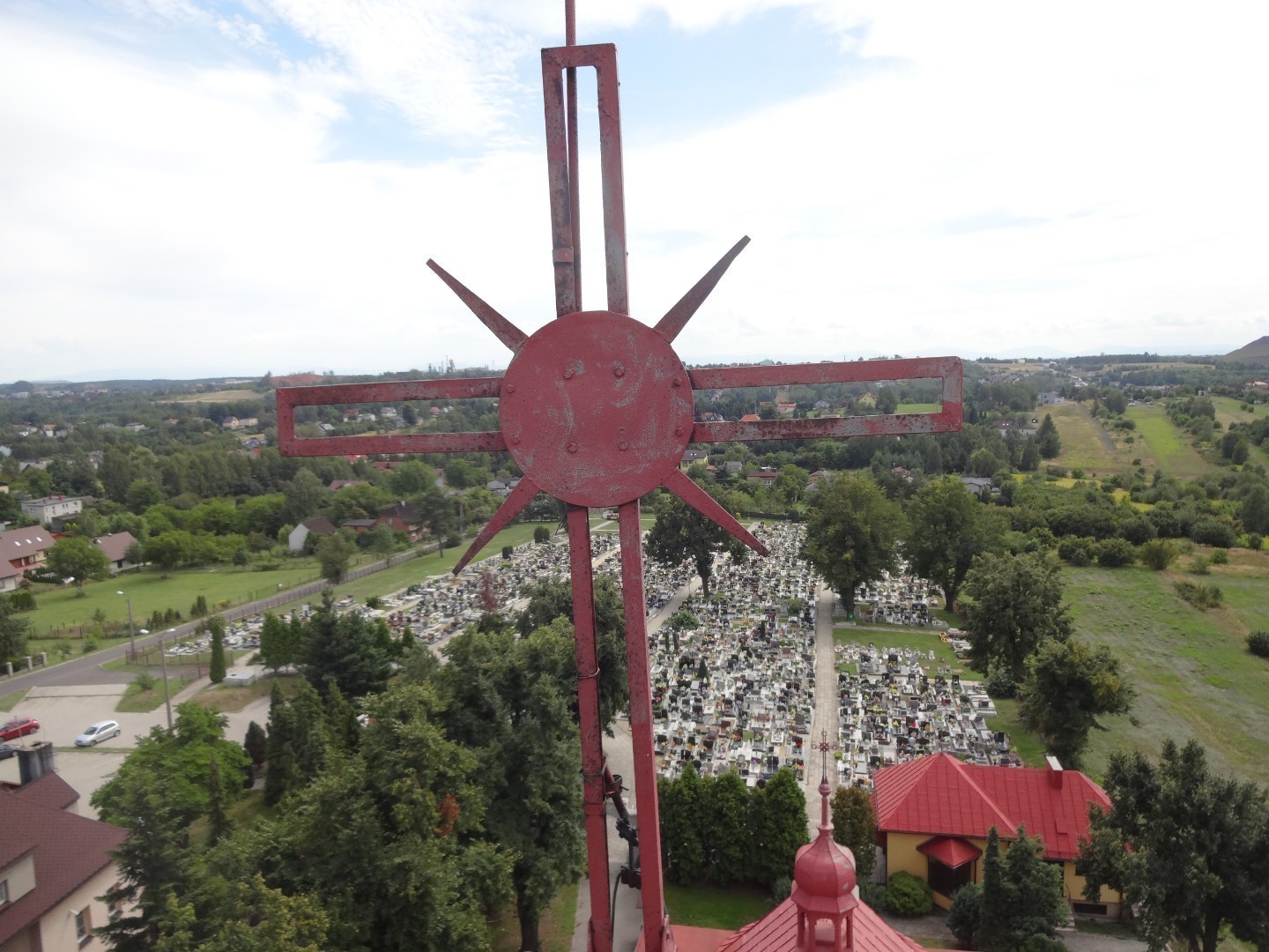 Widok na kościół z zwyżki 17.08.2019 r